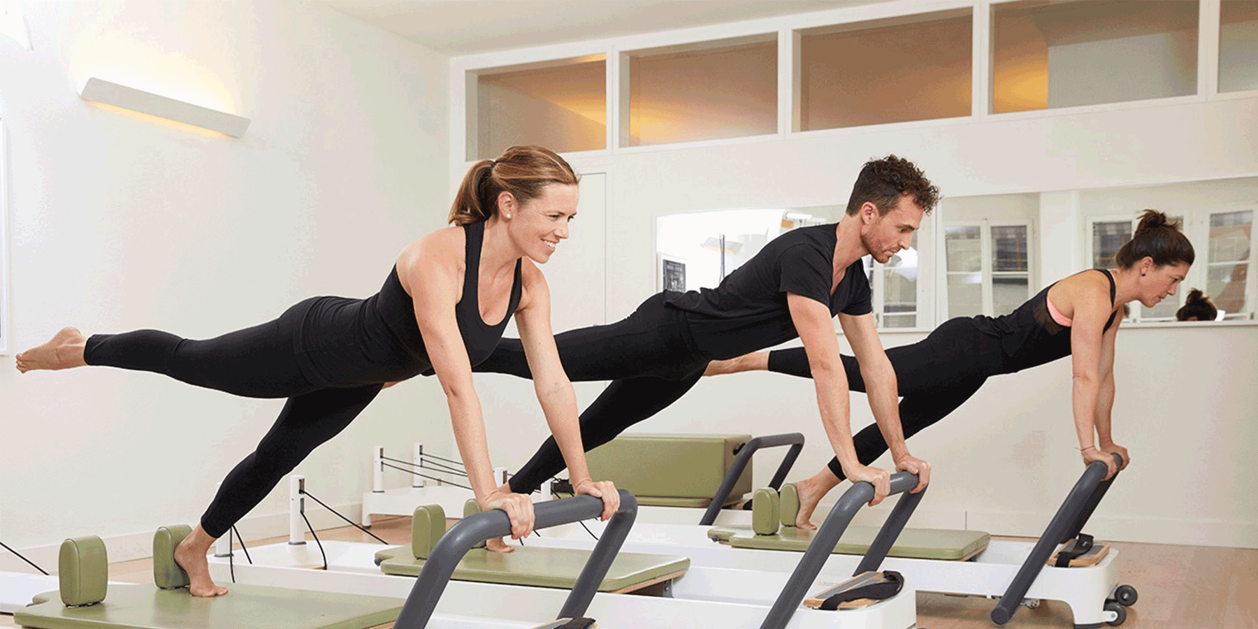 Gerätetraining auf dem Reformer für effektive Kraft- und Koordinationseinheiten.